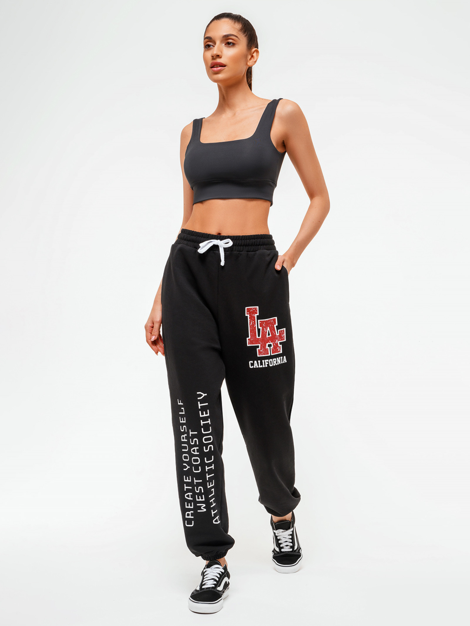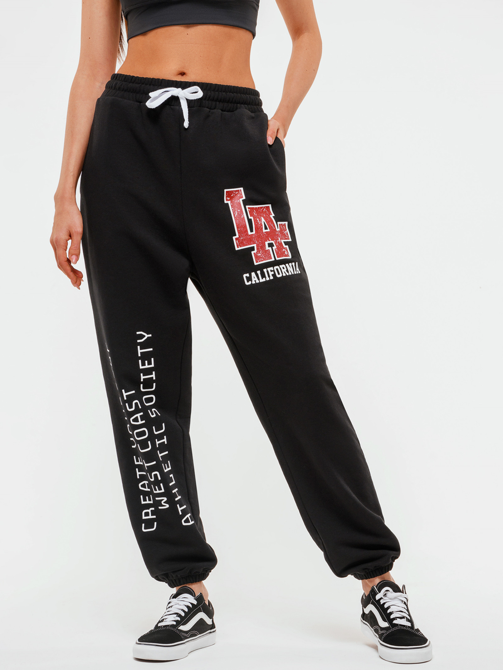 Спортивные брюки свободного кроя и средней посадки. Удобный пояс с резинкой внутри дополнен шнуром на талии, который регулирует посадку и обеспечивает дополнительную фиксацию. В сочетании с топами и рашгардами брюки помогут создать стильный расслабленный аутфит для танцев, фитнеса или прогулки. При правильном уходе хлопковый трикотаж с ярким брендированным принтом сохранит форму и цвет надолго!