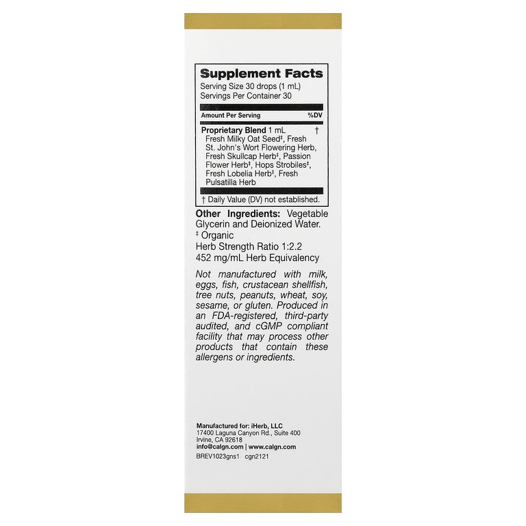 Содержит избранные растительные ингредиенты, включая зверобой, шлемник и пассифлору
