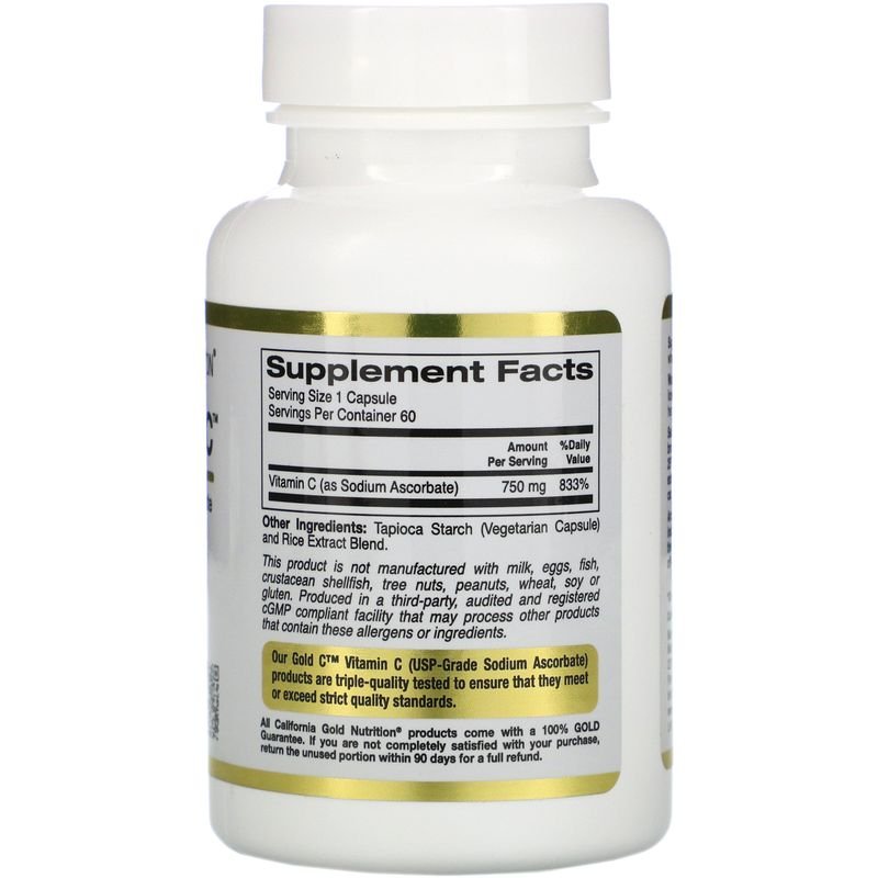 California Gold Nutrition, Буферизованный витамин C в капсулах представлен в некислотной форме аскорбиновой кислоты. Буферизованное питательное вещество помещено в растительную капсулу, для надежной и эффективной зашиты от кислорода.
