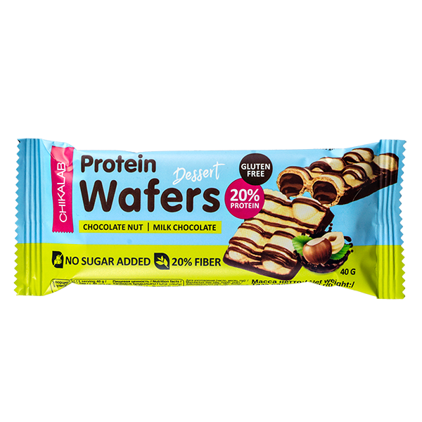 Протеиновые вафельные батончики Chikalab Protein Wafers – двойная вафля с начинкой. Вафельные батончики без сахара Protein Waffers с высоким содержанием белка!