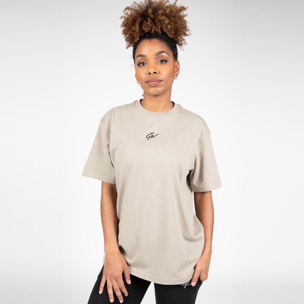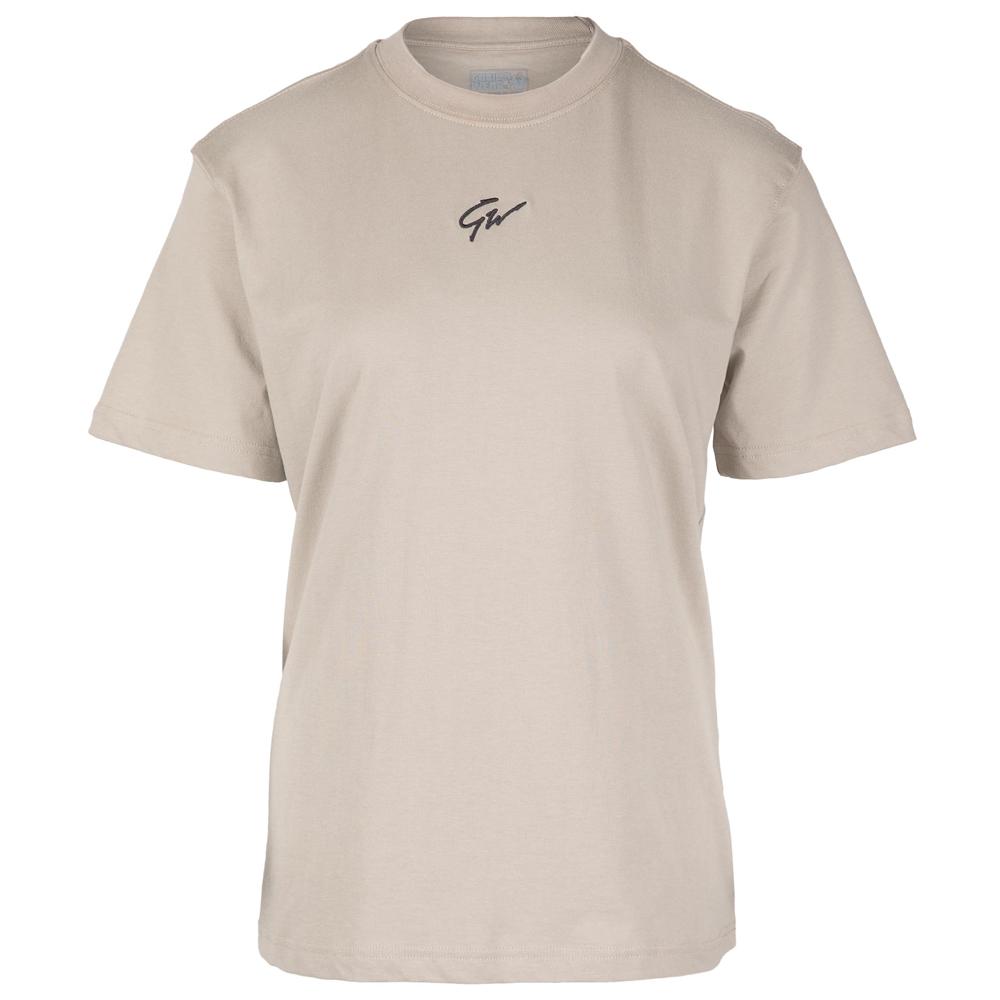 Женская футболка свободного кроя из мягкого хлопкового материала. Круглый вырез, свободная посадка, фирменный логотип GW на груди.