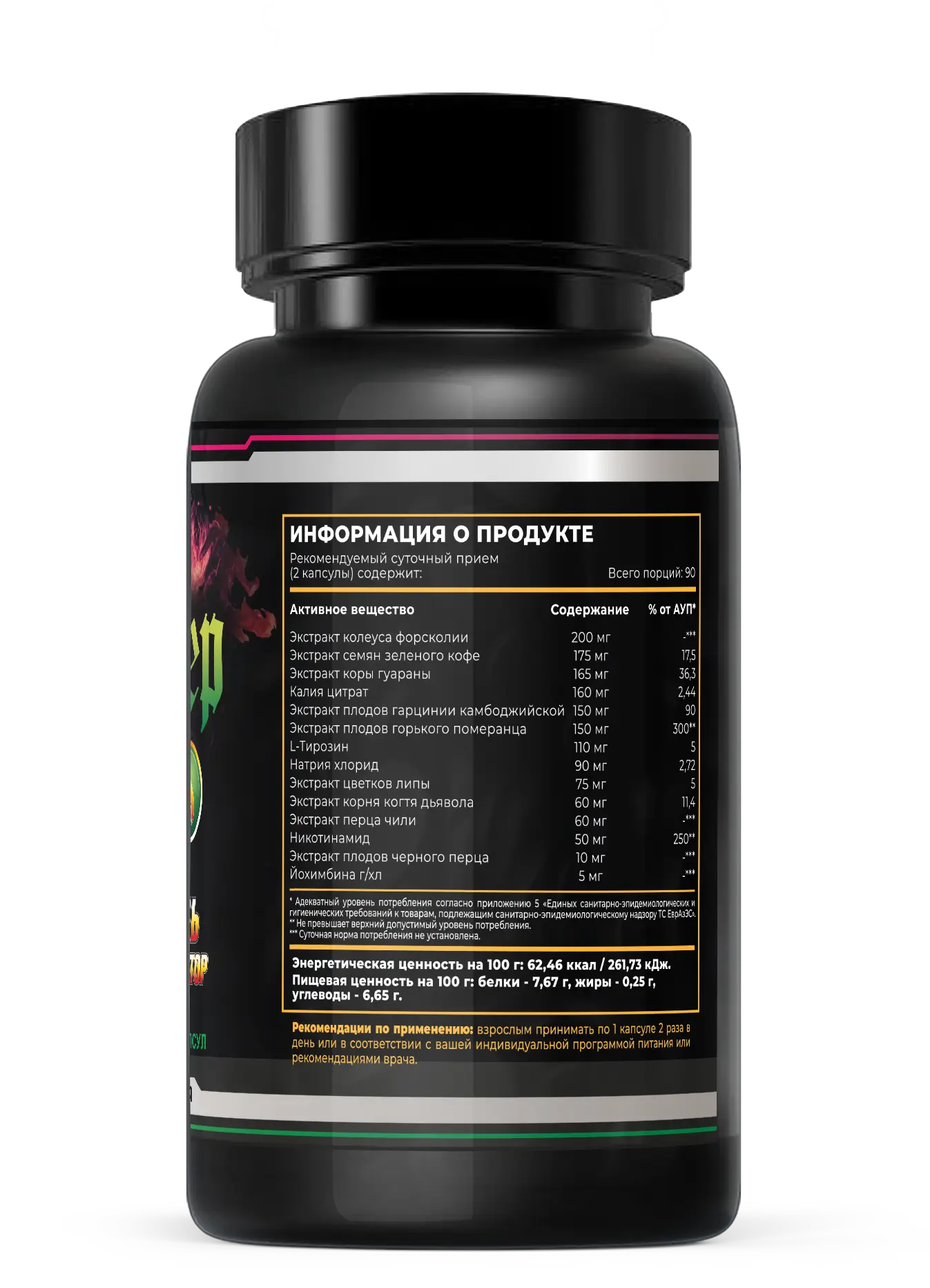 Экстракт перца чили — 60мг