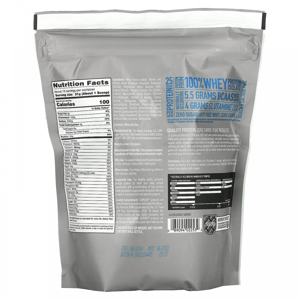 Zero Carb от компании Isopure – это протеин премиум качества, сделанный на основе сывороточного изолята. Данный продукт имеет высокое содержание белка и обогащен витаминами и минералами. Не содержит в себе глютена и углеводов, а так же имеет очень низкое содержание жиров. Zero Carb имеет наиболее расширенный аминокислотный состав, что делает продукт еще более полезным. Высокое содержание глютамина и BCAA способствуют ускоренному восстановлению и росту мышечных тканей, способствует укреплению иммунитета и препятствует процессу катаболизма. Кроме того, данный протеиновый порошок отлично размешивается и моментально насыщает организм ценными питательными веществами. Обладает приятным вкусом, что очень важно при ежедневном приеме.