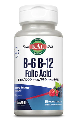 Микротаблетки ActivMelt с витаминами B6, B12 и фолиевой кислотой от KAL быстро тают во рту и разработаны для оптимального усвоения организмом. Пиридоксаль-5-фосфат B6, метил B12 и фолиевая кислота действуют синергетически, обеспечивая питательную поддержку здоровой работы сердечно-сосудистой системы за счет синтеза красных кровяных телец, а также поддерживая метаболизм белка и нормальный уровень гомоцистеина.