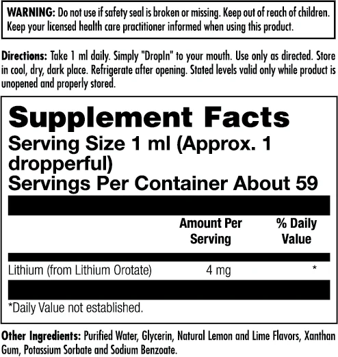Быстродействующие жидкие капли содержат легкоусваиваемую хелатную форму минерала – оротат лития, предназначенную для поддержания здоровой умственной деятельности, сбалансированного настроения и хорошего самочувствия.