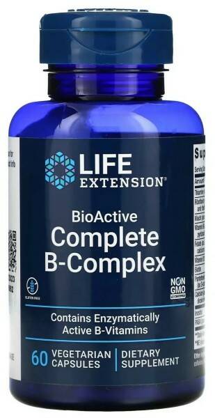 Life Extension, полный биоактивный комплекс витаминов группы B, 60 вегетарианских капсул.