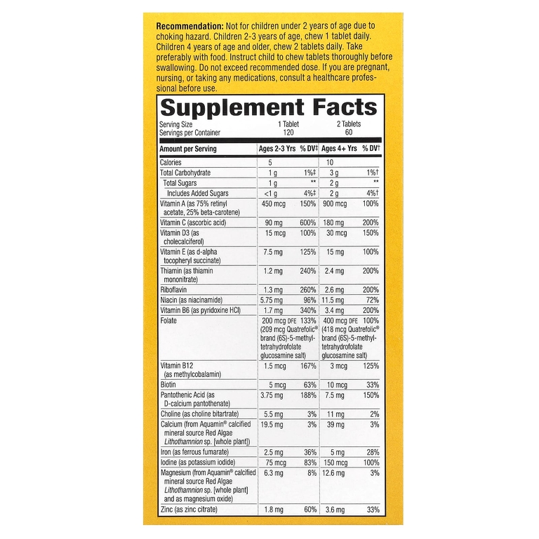 Детям в возрасте 2‒3 лет принимать по 1 жевательной таблетке в день. Детям в возрасте от 4 лет принимать по 2 жевательные таблетки в день. Желательно принимать во время еды. Ребенок должен тщательно разжевать таблетки перед проглатыванием. Не следует превышать рекомендуемую дозировку.