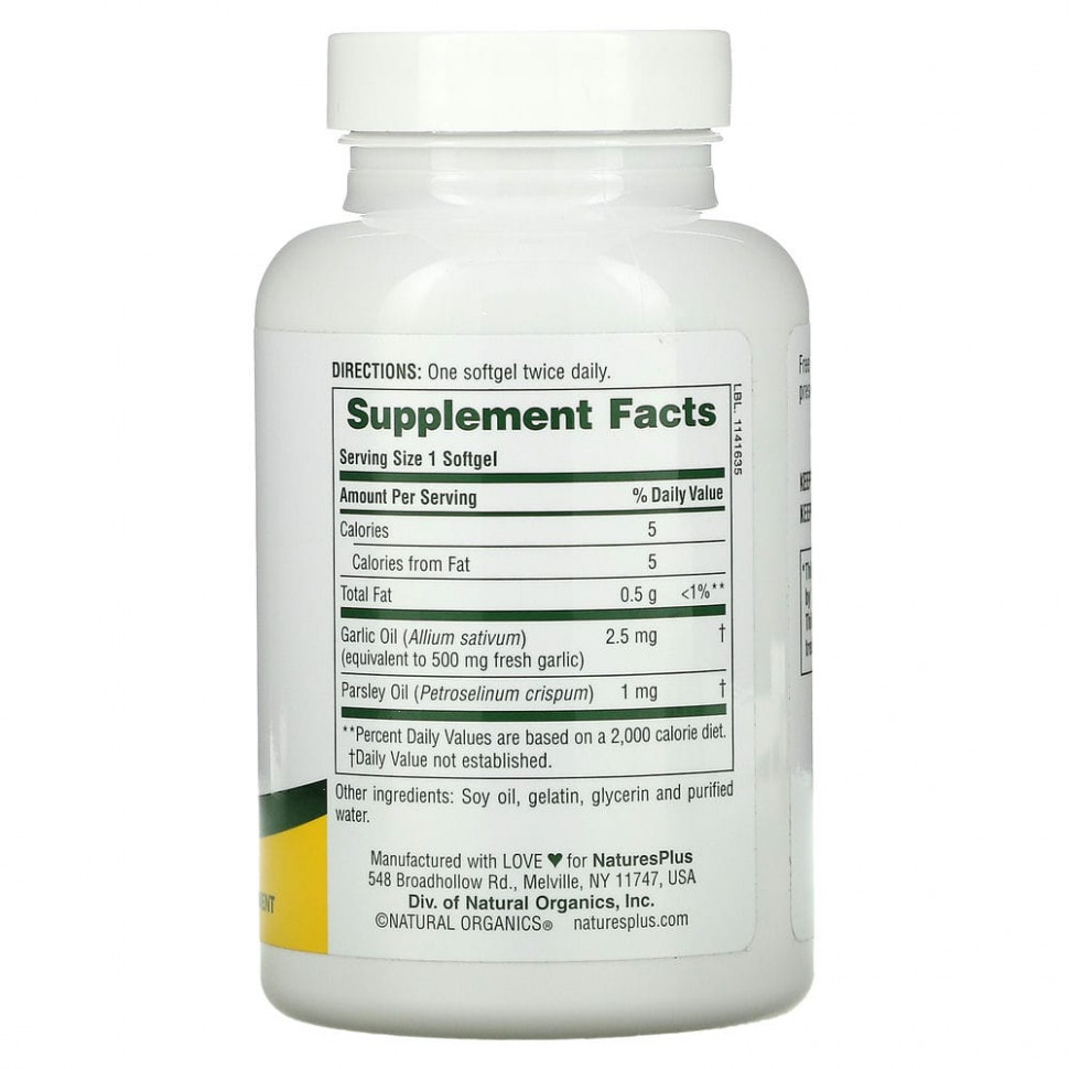 NaturesPlus Garlic&Parsley Oil 180 капс