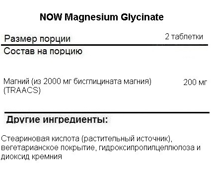 NOW Magnesium Glycinate 180 таб
