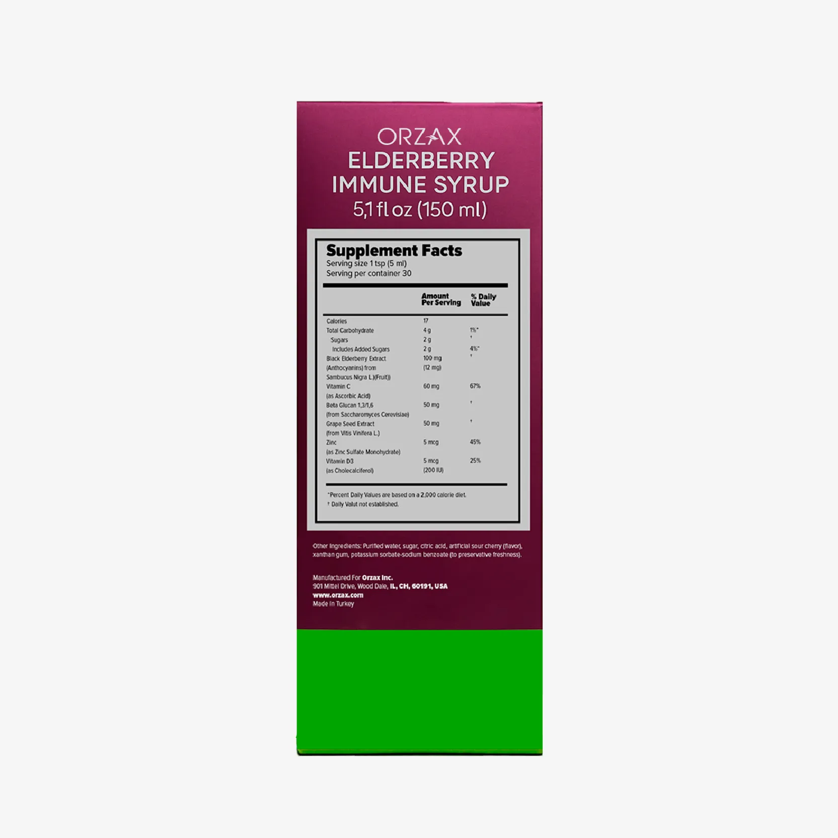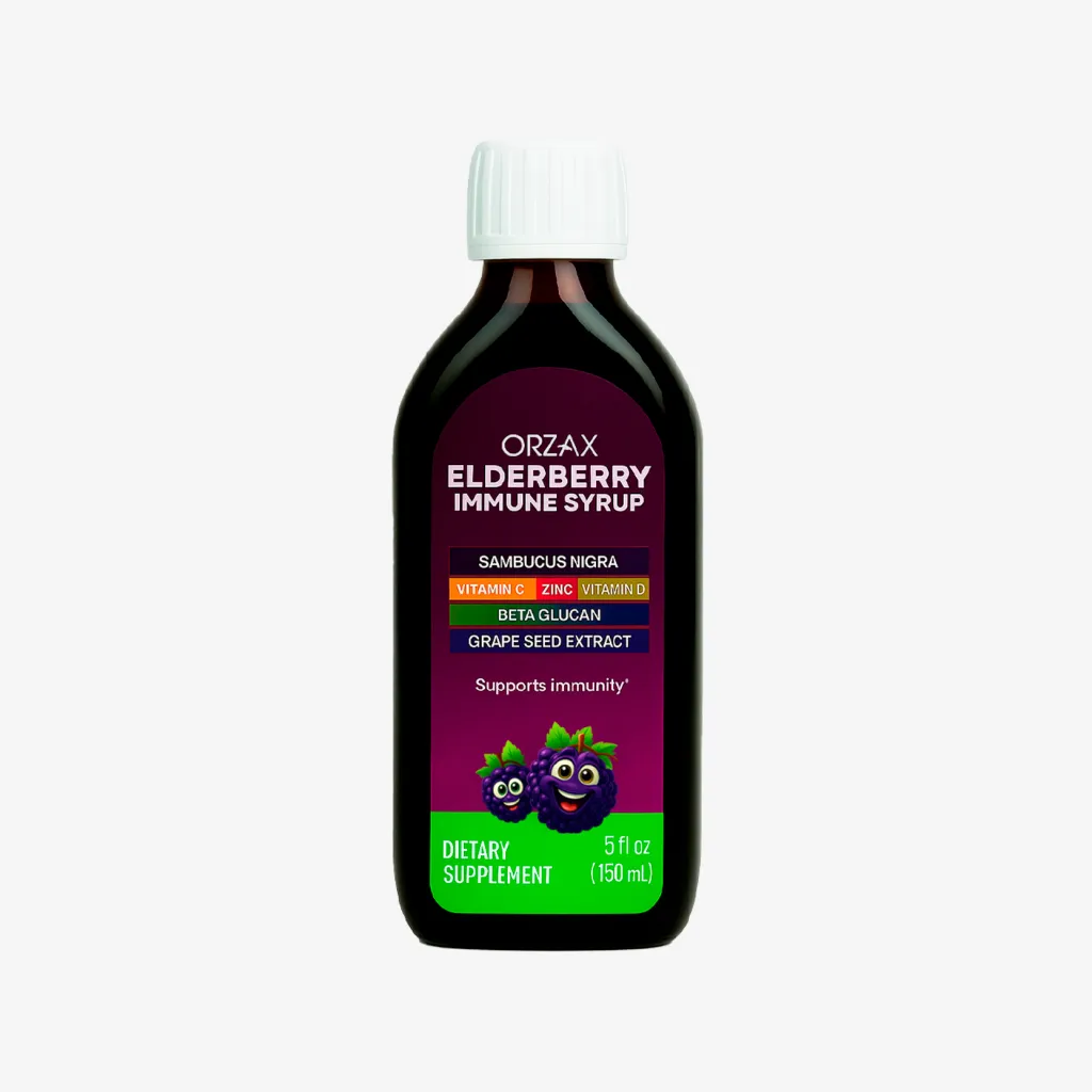 ORZAX Elderberry Immune Syrup – разработанный для поддержки и укрепления иммунной системы у детей. В состав входят экстракт черной бузины, витамин D, витамин С и цинк, которые оказывают комплексное воздействие на организм, помогая ему бороться с инфекциями. Сироп имеет приятный фруктовый вкус, что облегчает профилактику простудных заболеваний.