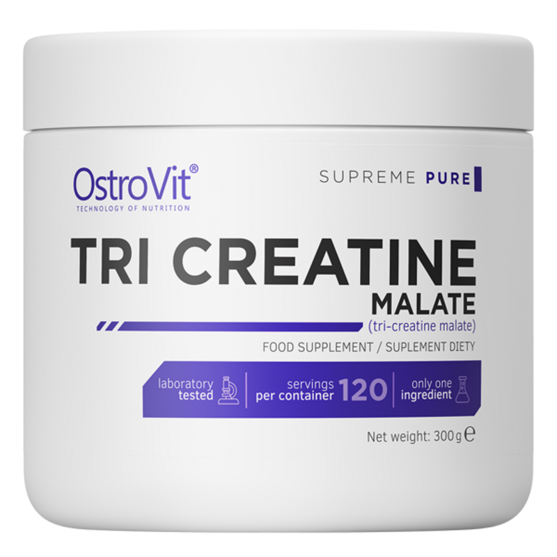 OstroVit Supreme Pure Tri-Creatine Malate – это пищевая добавка высочайшего качества, которая является источником малата креатина. Это комбинация креатина и яблочной кислоты в соотношении 1: 3. Добавка не содержит лишних наполнителей, наполнителей и других добавок.