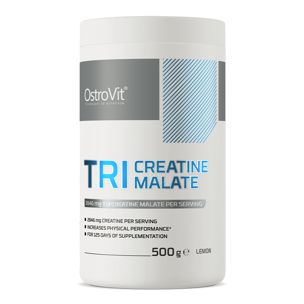 Три-креатин Малат от OstroVit по сути своей – комбинация молекулы креатина с яблочной кислотой в соотношении 1:3. Причем яблочная кислота повышает скорость усвоения креатина и улучшает его биодоступность. За счет нее креатин эффективнее превращается в фосфокреатин и устойчивее реагирует на желудочные ферменты.