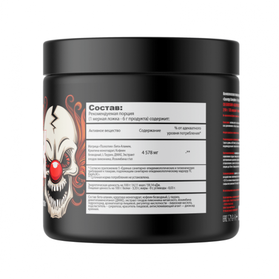 Матрица Психотик – 4578 мг (Бета-Аланин, Креатина моногидрат, Кофеин безводный, L-Таурин, ДМАЕ, Экстракт плодов лимонника, Йохимбина гидрохлорид)