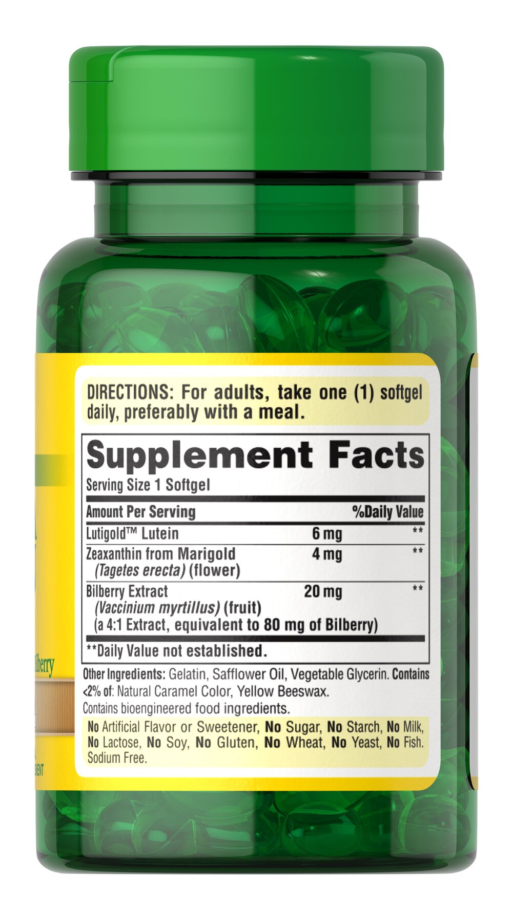 Puritan’s Pride Herbavision с лютеином и черникой содержит 60 мягких капсул. Эта формула содержит лютеин 6 мг и экстракт черники 20 мг на порцию.