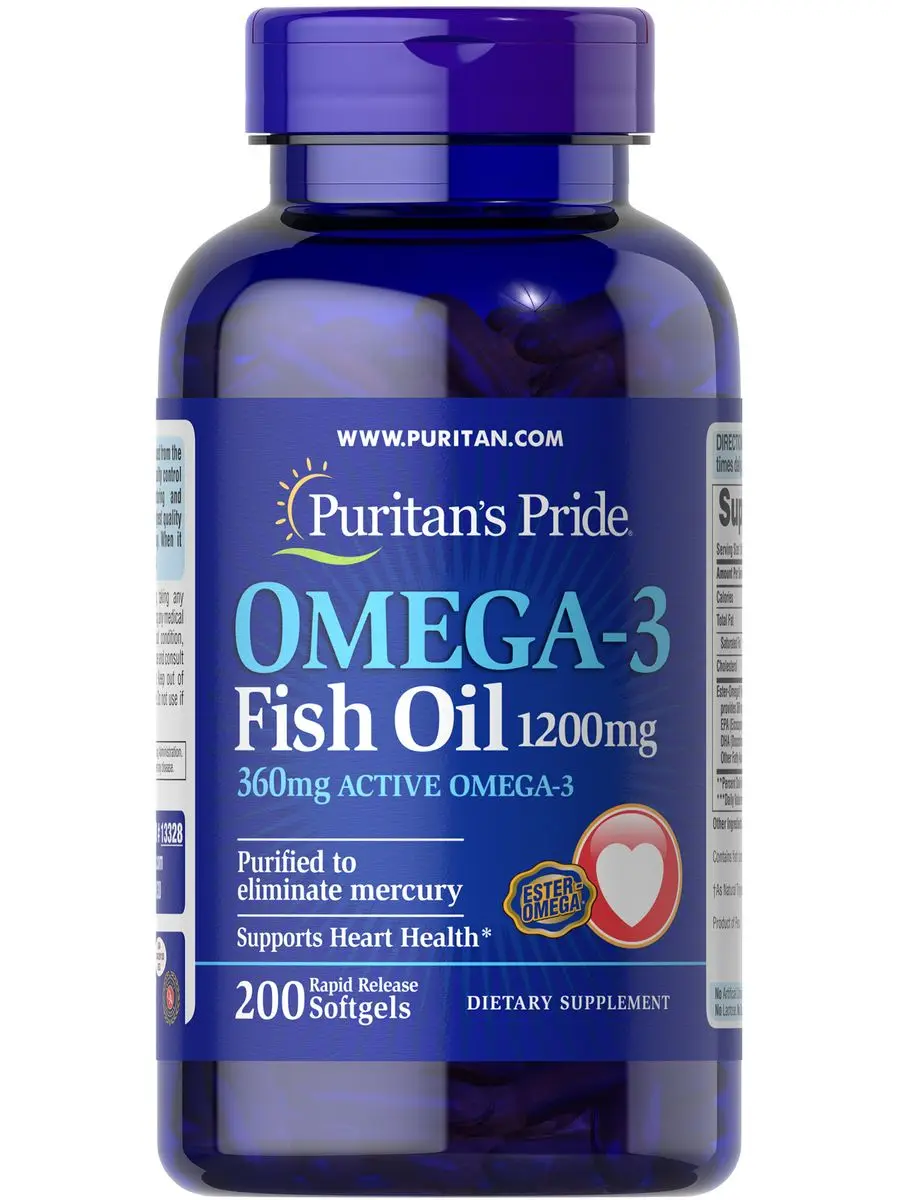 Американская кардиологическая ассоциация рекомендует употреблять не менее двух порций жирной рыбы в неделю, но в нашем рационе часто не хватает жирных кислот Омега-3. Puritan’s Pride Omega-3 может помочь дополнить ваш рацион. Они также очищены от ртути.