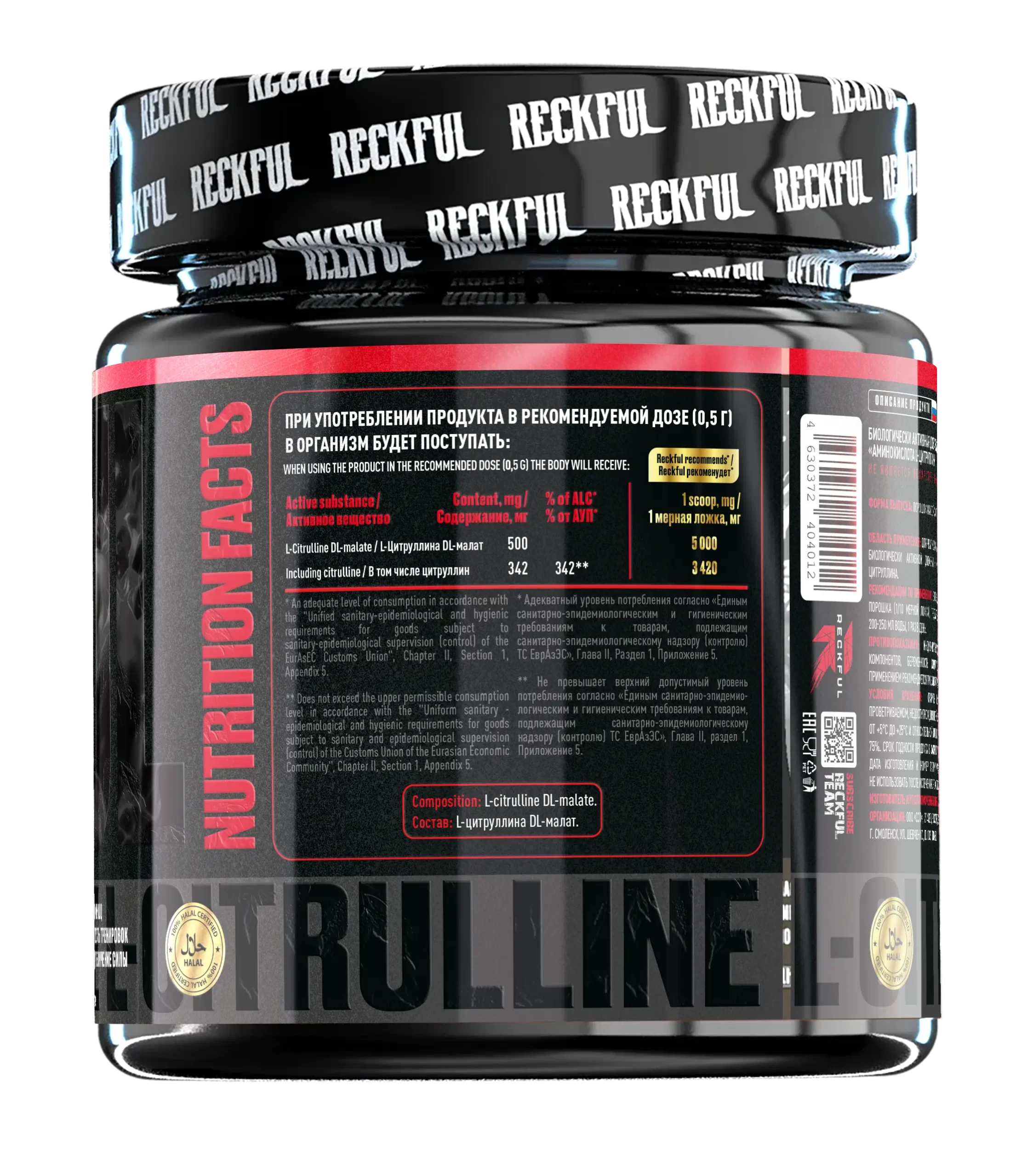 Reckful® L-Citrulline Malate 240 г — это высокоэффективная форма цитруллина с малатом, предназначенная для усиления выработки оксида азота (NO), улучшения кровотока, повышения выносливости и сокращения мышечной усталости. Продукт отлично подходит как для предтренировочного приёма, так и для поддержки восстановления.