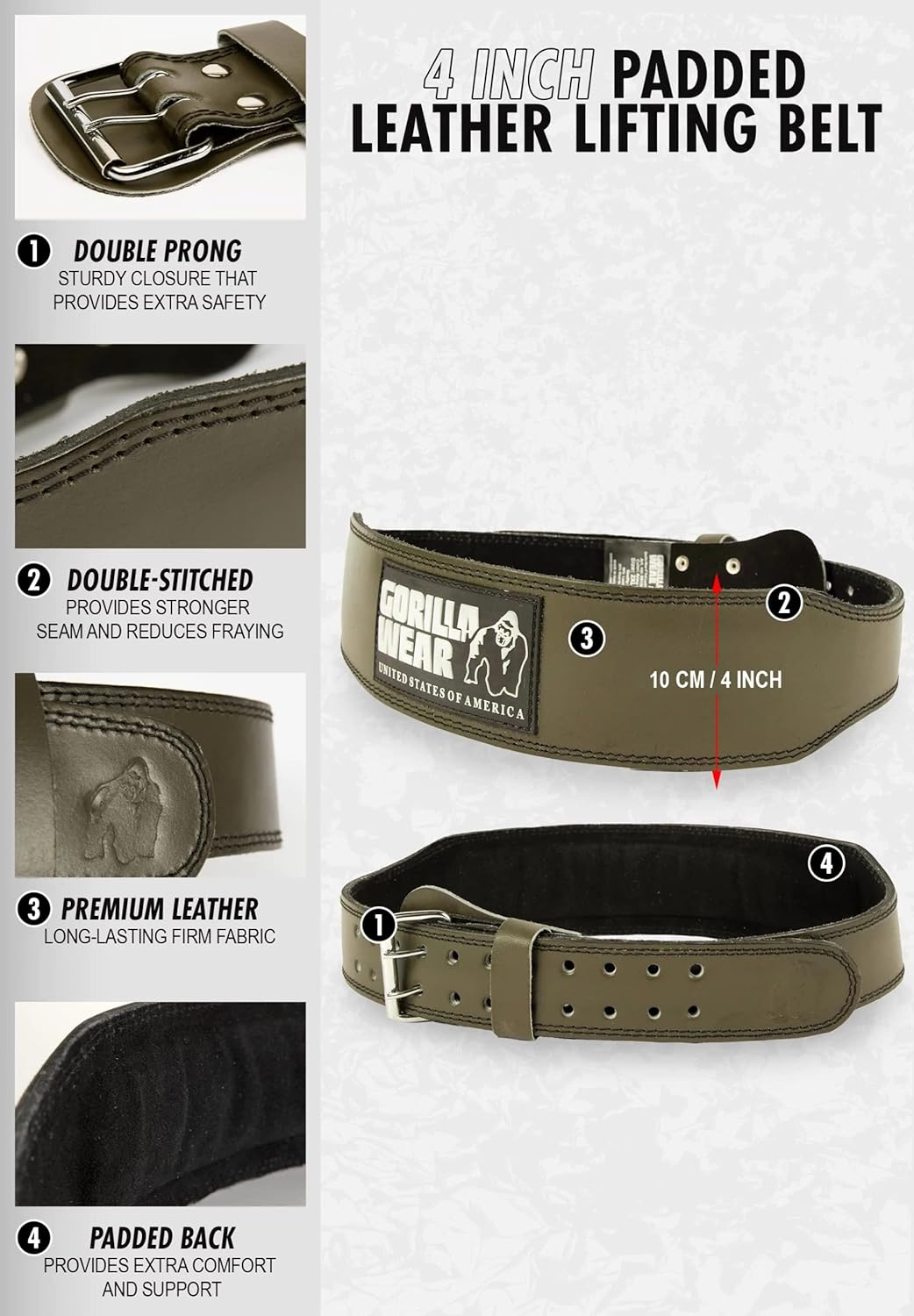 4-дюймовый кожаный подъемный ремень с подкладкой Gorilla Wear снижает нагрузку на поясницу и предотвращает перерастяжение при подъеме тяжестей. Давление ремня поддерживает поясницу и стабилизирует позвоночник. Кроме того, ношение пояса для подтягивания позволяет лучше следить за правильной осанкой во время упражнений. Этот ремень с двойным швом изготовлен из высококачественной кожи и украшен крупным логотипом Gorilla Wear. Подкладка обеспечивает дополнительную поддержку и комфорт. Металлическая пряжка справится с любой задачей. 4-дюймовый кожаный подъемный ремень с подкладкой Gorilla Wear отлично сидит по фигуре, обеспечивает оптимальный комфорт и позволяет поднимать вещи без беспокойства!