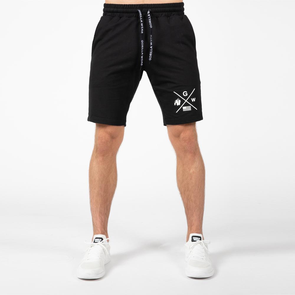 Шорты из хлопкового трикотажа с эластичным поясом на резинке, два боковых кармана, логотип бренда. Модель прямого кроя.