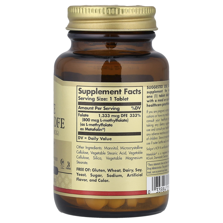 Фолат (800 мкг L-метилфолата) (в виде L-метилфолата в виде Metafolin®) 1333 мкг DFE