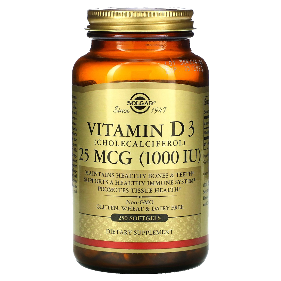 Дефицит витамина Д3 – распространенное явление, которое связно с недостаточным пребыванием на солнце, несбалансированностью рациона. Для восполнения недостатка холекальциферола применяется препарат Vitamin D3 Solgar 1000 IU. Биодобавка помогает регулировать процессы жизнедеятельности, связанные с поддержанием здоровья костей, зубов, иммунной системы.
