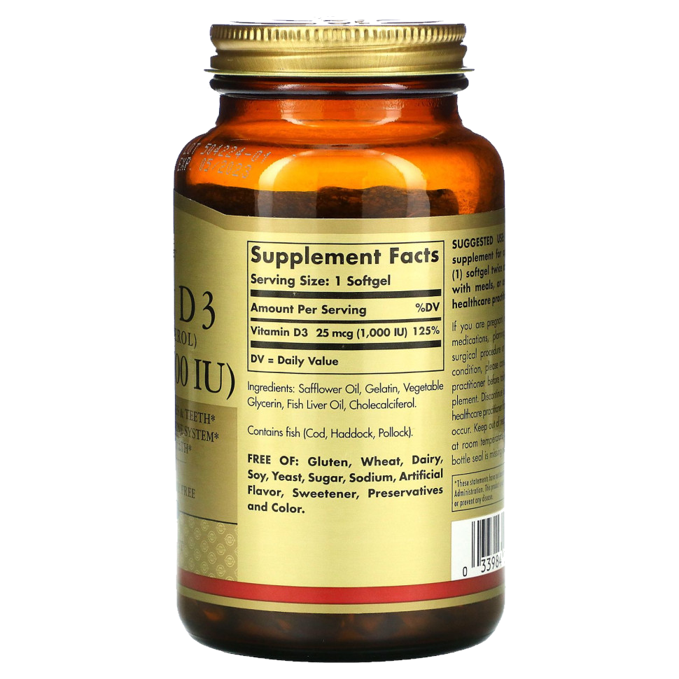 Витамин Д3 Солгар 1000 МЕ свойства: