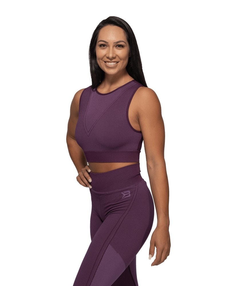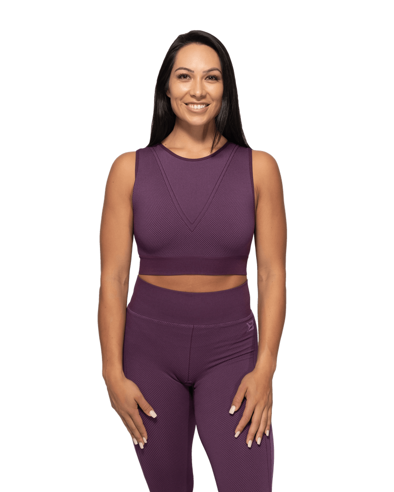 Цвет Royal purple имеет “ярко-фиолетовый” оттенок и детали, в то время как черный цвет имеет детали “темно-синего” цвета. Пожалуйста, обратите внимание, что бесшовный топ Roxy не является спортивным бюстгальтером и обеспечивает только легкую поддержку. Для лучшей поддержки надевайте под него спортивный бюстгальтер.