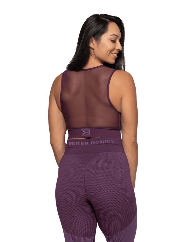Бесшовная конструкция с различными рисунками ткани создает уникальный образ, подчеркивающий вашу фигуру. Задняя часть топа выполнена из сетчатой ткани, которая позволяет продемонстрировать ваш любимый спортивный бюстгальтер с ремешками.