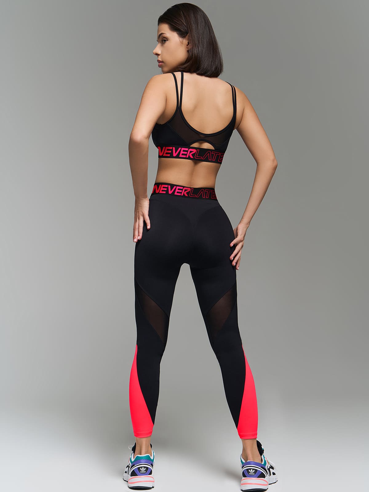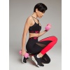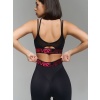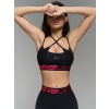Бретели с эластичной резинкой внутри обеспечивают надежную фиксацию спортивного топа на все время занятий. Спина изделия декорирована фигурным вырезом.