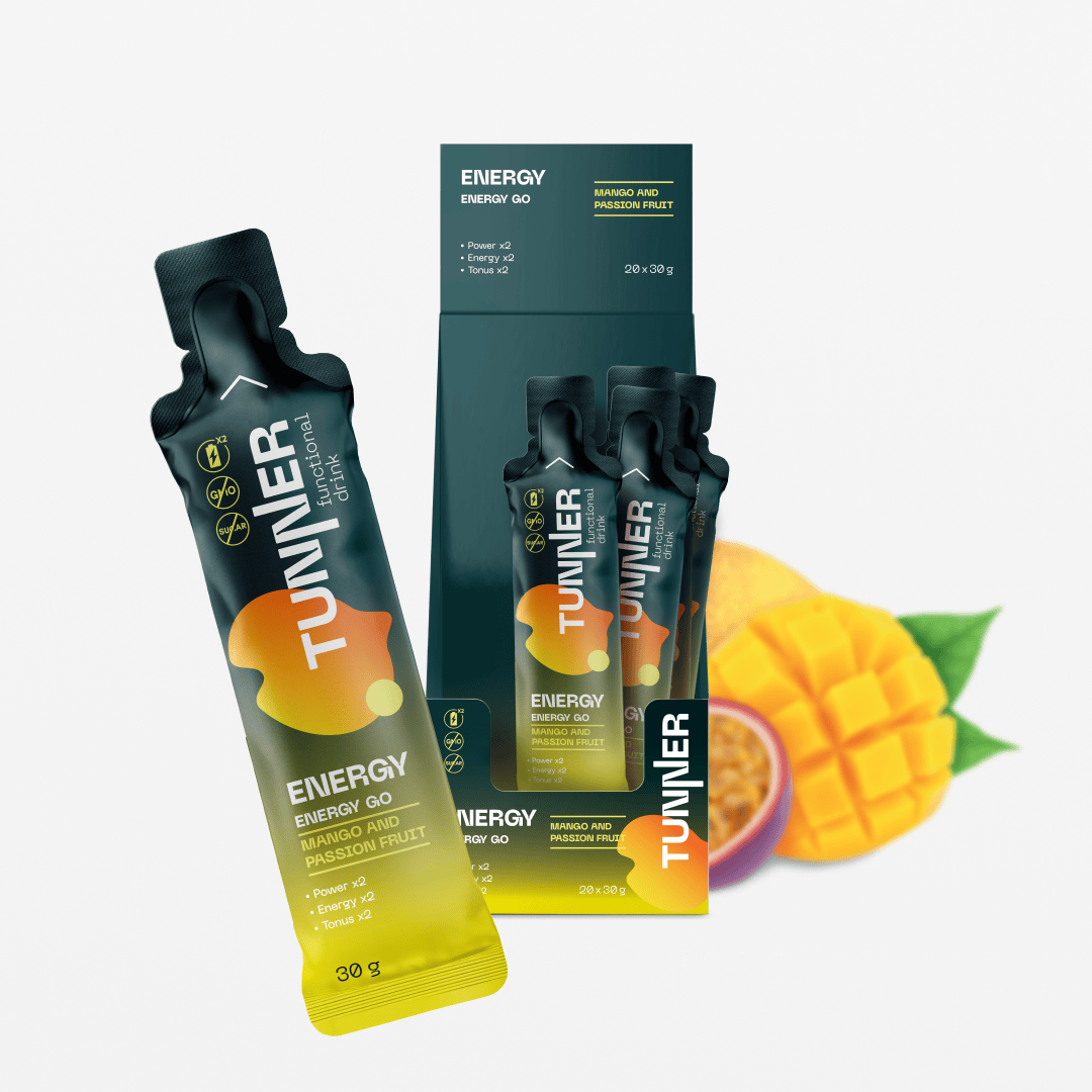 Функциональный напиток ENERGY GO со вкусом «Манго-маракуйя» обладает тонизирующими свойствами, способствует увеличению энергии, повышению продуктивности. Обогащен витаминами, комплекс которых нормализует окислительные и восстановительные процессы, укрепляет иммунитет и повышает работоспособность мозга, способствуя улучшению памяти и настроения.
