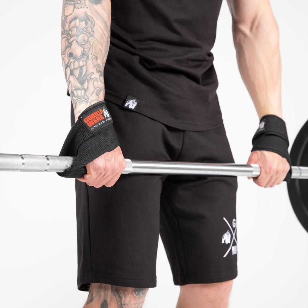 Тяги предназначены для страховки и усиления кистевого хвата при выполнении силовых упражнений. Предотвращают выскальзывание штанги и гантелей из рук, а также соскальзывание рук с перекладины турника. Внутренняя часть дополнена мягкой подкладкой для комфорта во время тренировок. Вышитый лейбл Gorilla Wear на внешней части.